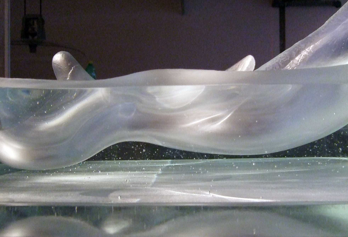 Liquid Level je stylizovaná vodní hladina, která se rozechvěla po skápnutí kapky. U plastiky Liguid Level jsem se vyrovnávala s tím, že pojem tavená plastika je v Čechách synonymem svázaným se světoznámými sklářskými výtvarníky Jaroslavou Brychtovou, Stanislavem Libenským a jeho školou. Snažila jsem se o osobní přístup a podání, které pouze nezmnožuje již zaběhlé způsoby a tvarosloví. Pokoušela jsem se v tom nejlepším slova smyslu navázat a rozvíjet tradici a hodnotu této techniky.